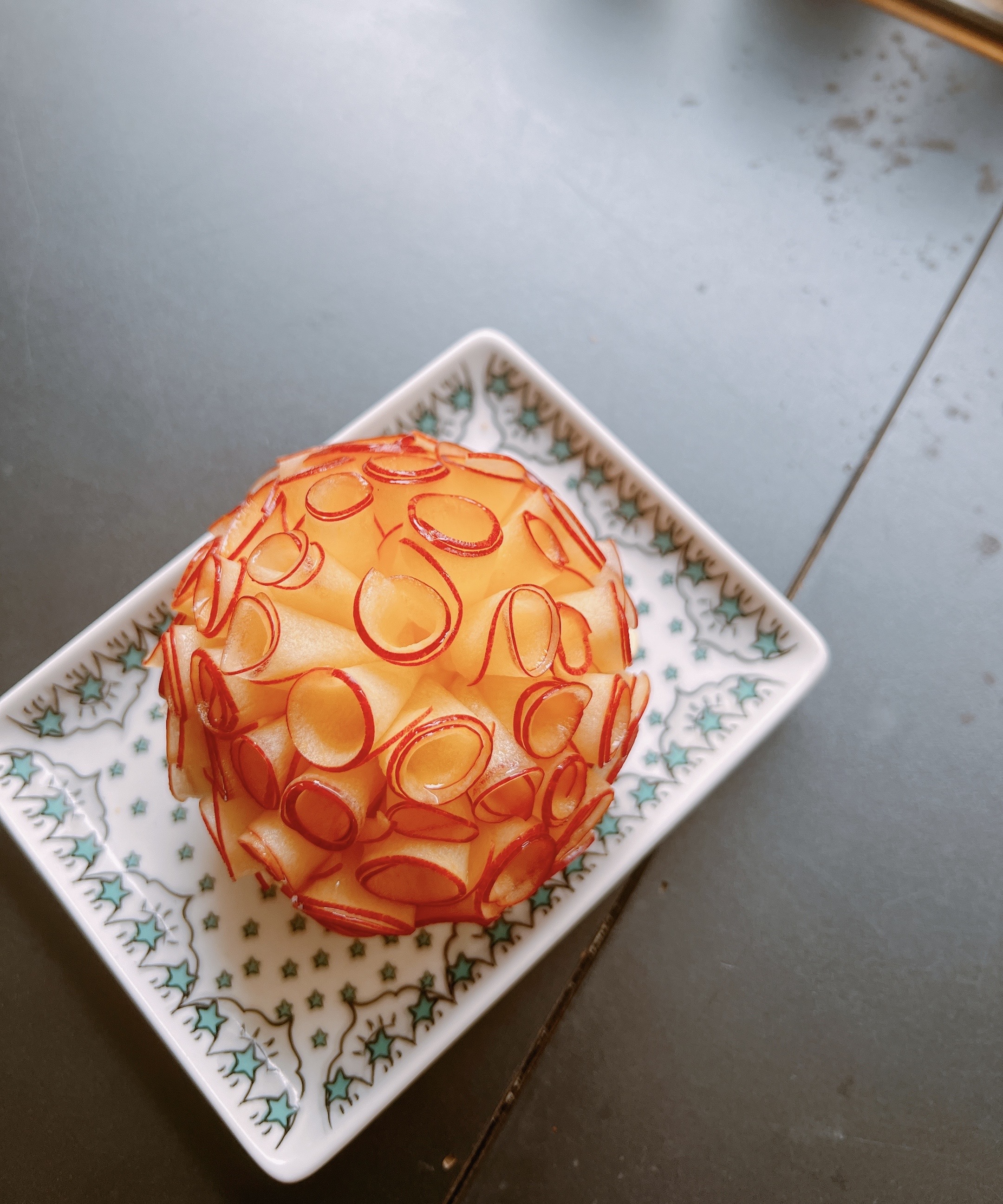 再以頂級清華肉桂妝點,最後手捲新鮮蘋果薄片